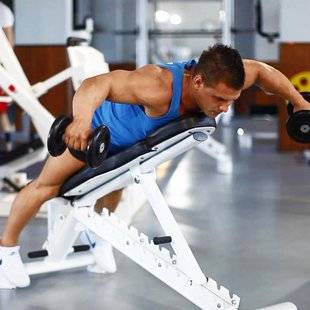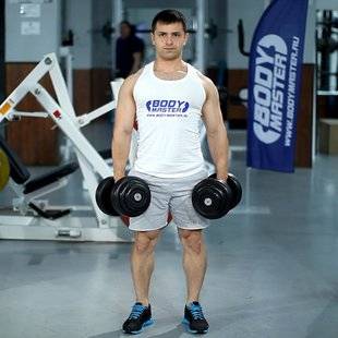 В принципе, оно одинаково хорошо подойдет как для набора веса, так и для «сушки», поскольку мышцы при его выполнении прорабатываются достаточно качественно и глубоко. Однако брать большой вес в этом упражнении не получится (иначе вы попросту не удержите равновесие), и поэтому его чаще применяют при работе на рельеф.