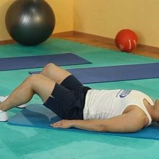 - Изначально следует лечь на спину, согнуть ноги в коленях, руки вытянуть параллельно телу;