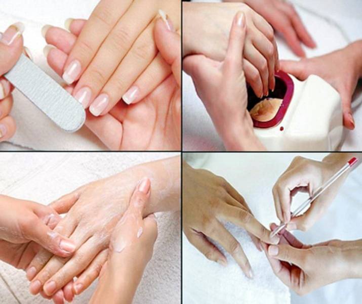 Во время проведения горячего маникюра под действием тепла происходит раскрытие пор, но это, к сожалению, способствует лучшему проникновению не только активных веществ, но и любых других, совсем не полезных. Если на руках находятся частицы жира, пота или грязи, повышается вероятность получить раздражение, а положительного эффекта от процедуры не будет. Именно поэтому не стоит пренебрегать очищением рук. Для этого подойдет специальный спрей, раствор на основе спирта или мыло типа Safeguard. Остатки старого покрытия следует удалить, используя специальную жидкость. - Манипуляции с ногтями.