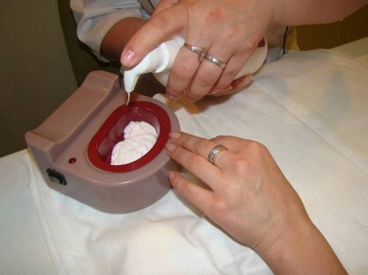 Также необходима специальная ванночка, которая нагревает, а после поддерживает достаточную температуру (около +30…+45 градусов) жидкости. Под воздействием тепла раскрываются поры, и питательные элементы проникают глубоко в дерму, оздоравливая и размягчая клетки