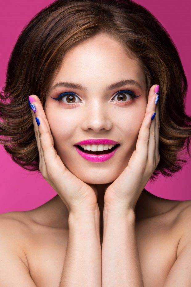 Фуксия – отличный выбор для торжественного случая: она отлично сочетается с белым, черным или кобальтовым оттенками. Губы розового цвета одинаково хорошо смотрятся в повседневном варианте, поэтому помада такого цвета обязательна в косметичке на весну и лето.