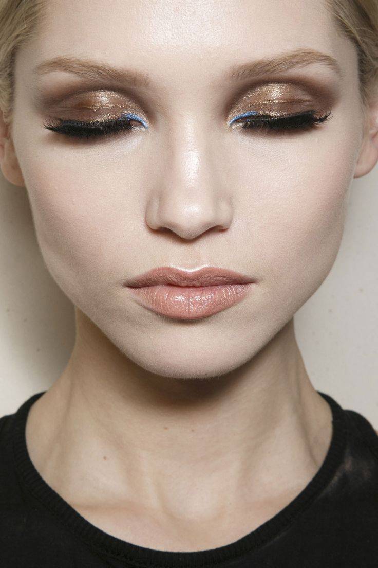 С теми же «стрелками» и перламутровыми тенями отлично сочетаются нежных тонов блески для губ подобранные под оттенок кожи. Их сегодня наносят без использования корректирующего карандаша.