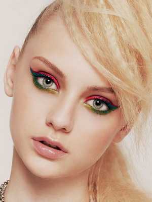 Цветные тени – в этом сезоне не просто яркость цвета решает вопрос моды, визажисты выбирают тени, похожие на фломастер из яркой кричащей палитры, такие оттенки как серебристые, красные, зеленые, фиолетовые и даже черные.