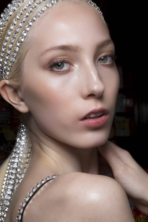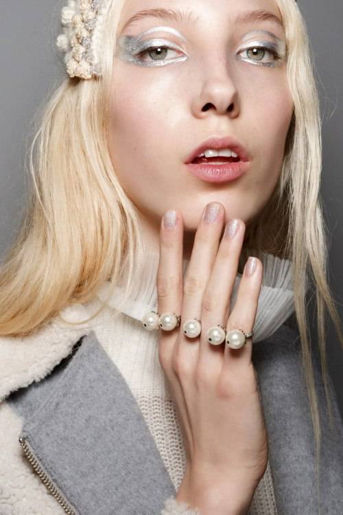Добиться такого эффекта можно, используя нюдовые холодные оттенки, серебристый шиммер, нежный блеск для губ.