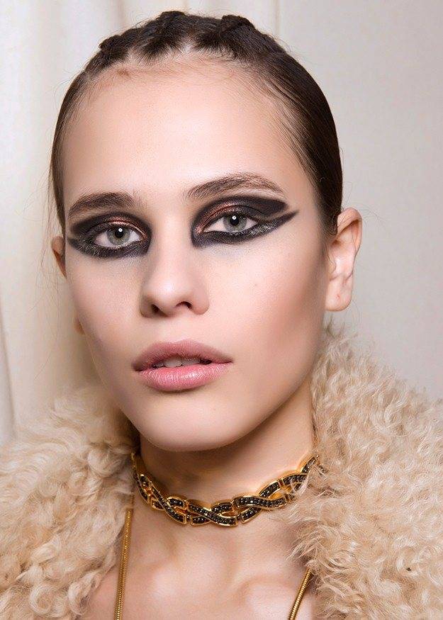 Несомненно, остается актуальным в сезоне осень-зима смоки-айс в горизонтальной и вертикальной технике нанесения теней, который позволяет создать четкий, выразительный, томный и сексуальный взгляд. Преимущество получили серые и коричневые оттенки теней.