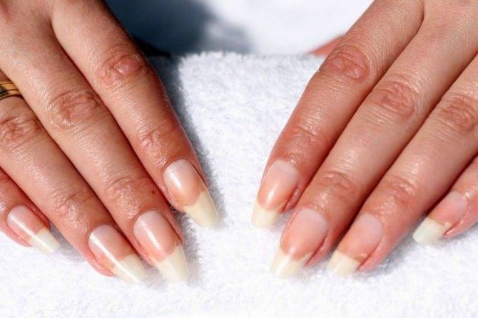 На некоторое время лучше отказаться от лаковых покрытий ногтя, кроме лечебных составов. Использование профессиональных и натуральных средств вместе ускорит процедуру восстановления рук.