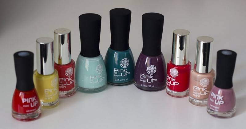 Пинк Ап выпускает широкую палитру лаков для ногтей всех цветов и оттенков. Доступно две версии: mini и standart. Лак долго держится на ногтях. С топовым покрытием может прослужить без сколов 4-5 дней.