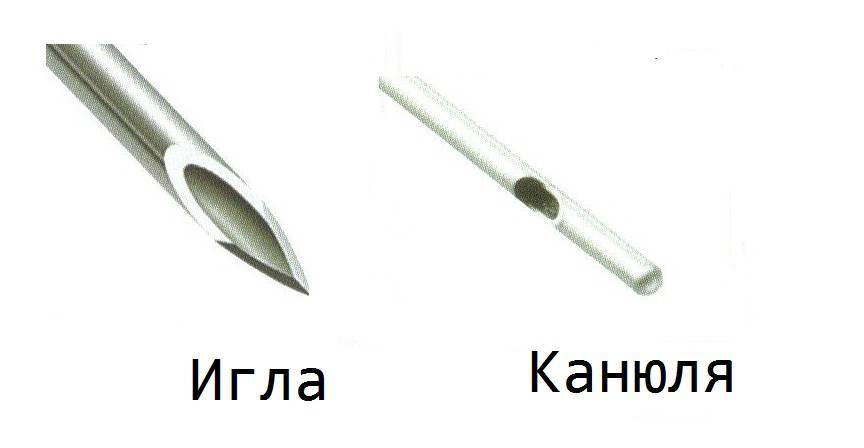 Что такое канюля? По внешнему виду она сильно напоминает классическую иглу (наружное сходство хорошо заметно на совместном фото). Собственно, и принцип действия у этих двух приборов одинаков: доставка или изъятие требуемого вещества.