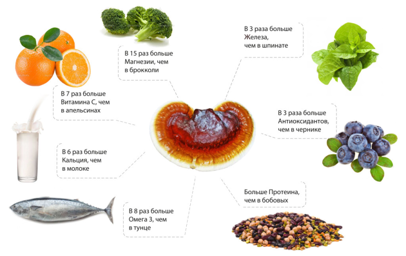 Гриб Рейша насыщает кровь полезными микроэлементами и кислородом, благодаря которым улучшается работа всех внутренних органов.