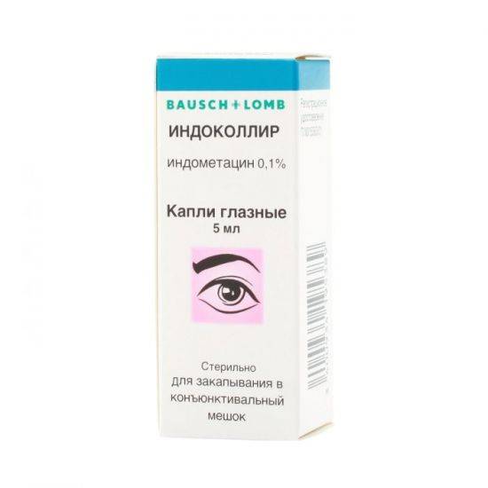 Эффективное обезболивающее средство для глаз французского производства. Применяется как в хирургической офтальмологии для анестезирования органов зрения перед вмешательством, так и после него для снятия послеоперационных болей. Также может назначаться при механическом повреждении глазного яблока и окружающих тканей, отечности, покраснении, воспалении инфекционного характера. Но при этом глазные капли «Индоколлир» не дают никакого терапевтического эффекта и не купируют само воспаление. Потому применяют их только в комплексе с другими противовоспалительными или антибактериальными средствами.