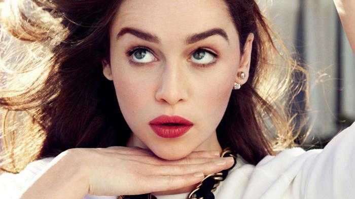 В отличие от героини «Игра престолов», у актрисы волосы темные, а довольно густые брови Эмилии Кларк (фото см. ниже) часто являются предметом разных пересудов, ведь они во время ее интервью с журналистами «активно в нем принимают участие».