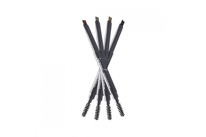 Этот карандаш для бровей представлен в четырёх оттенках, угождая не только шатенкам и блондинкам, но также русоволосым и рыжим красавицам. Он оснащён твёрдым нетолстым грифелем и маленькой щёточкой, подходящей для растушёвки негустых бровей. Благодаря заострённому кончику можно быстро подправить контур или прорисовать дополнительные волоски, не повредив при этом кожу лица.