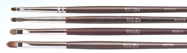 – правильная растушевка. Для этого вам понадобятся плоские кисти разного размера, желательно из натурального ворса. Кисть работает плоскостью, т.е. для растушевки карандашной линии край кисти нужно положить, а не ставить вертикально. Тонким срезом кисти удобно вытягивать линии, например, от внешнего угла к внутреннему, двигаясь вдоль линии роста ресничек.