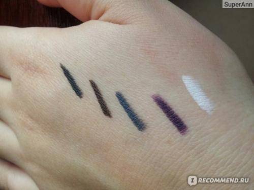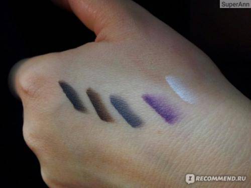 На курсах я приобрела всего лишь один карандаш-черный. Для меня он все-таки грубоват в макияже. Хотелось что-то более спокойное, не такое броское. Острой нужды в карандашах не было, да и денег лишних тоже. Так для заказа я “созрела” ближе к выпускному в университете, выбрав сразу 4 наиболее необходимых оттенка: коричневый, фиолетовый, белый и серо-голубой. В добавок ко всему заказала еще и супер-точилку , которую больше не променяю ни на какую другую! Она действительно классная! Ни разу не пожалела о покупке. Пользуюсь с огромным удовольствие и проблем не знаю.