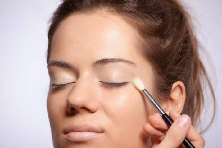 Сначала на очищенную и покрытую базой кожу наносятся тени светлого оттенка. Их нужно аккуратно растушевать специальной кисточкой, о которой говорилось выше. Затем внешняя половина верхнего века покрывается тенями более насыщенного оттенка. Тени растушевываются, чтобы не был заметен переход.
