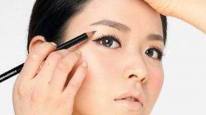 Азиатские глаза узкие, поэтому их «распахивают» с помощью темного и жирного (мягкого) карандаша. На верхнем веке стрелку не нужно доводить до внешнего уголка. Лучше отступить от него несколько миллиметров. На нижнем веке стрелка должна начинаться от середины и идти к внешнему уголку.
