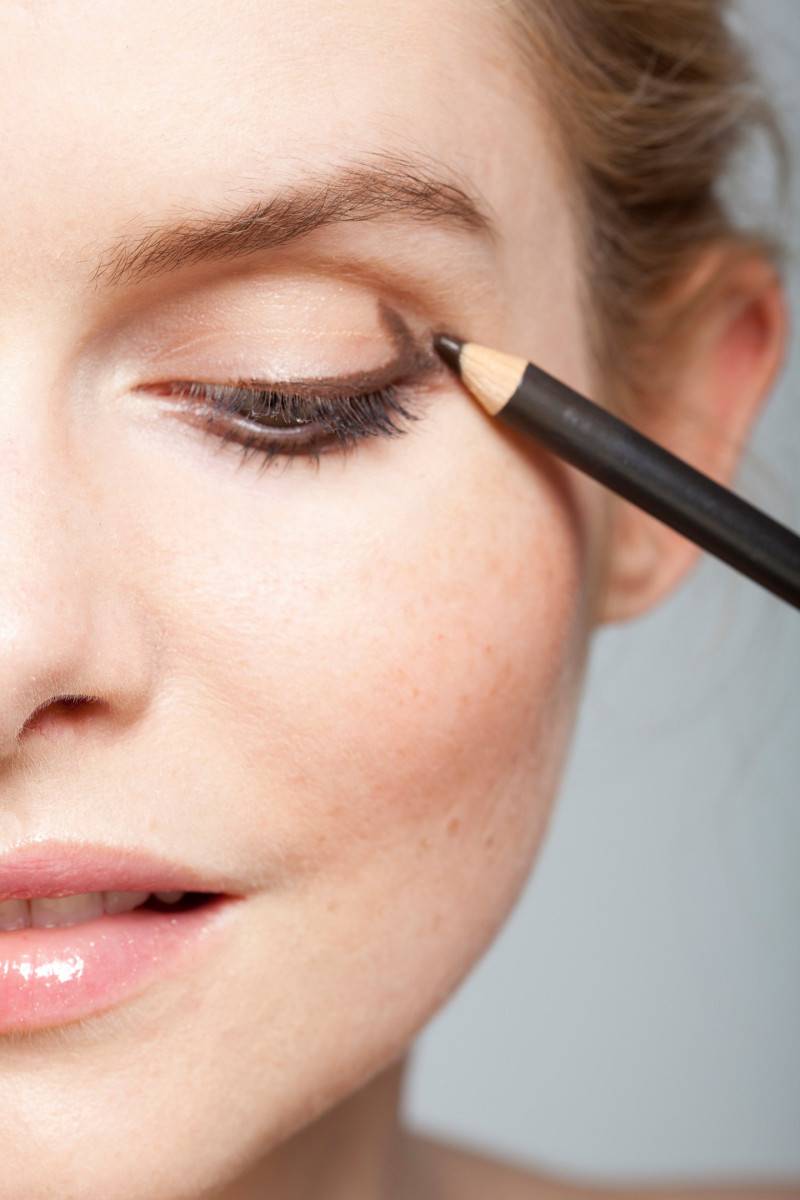 Это должны быть хорошо растушеванные карандашные штришки, которые ближе к внутреннему уголку глаза становятся светлее. В самом внутреннем уголке стоит использовать светлый карандаш. Для рисования этой зоны века подойдет белый или светло-бежевый карандаш. При помощи такого простого трюка вы сможете визуально сделать взгляд более открытым, что конечно только пойдет вам на пользу.