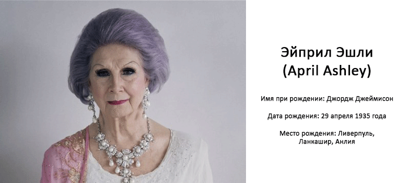 С Эйприл связан самый известный в Англии случай смены пола. Мальчик Джордж, родившийся в Ливерпуле, по психологическим характеристикам был девочкой. Он всегда ненавидел свой половой орган.