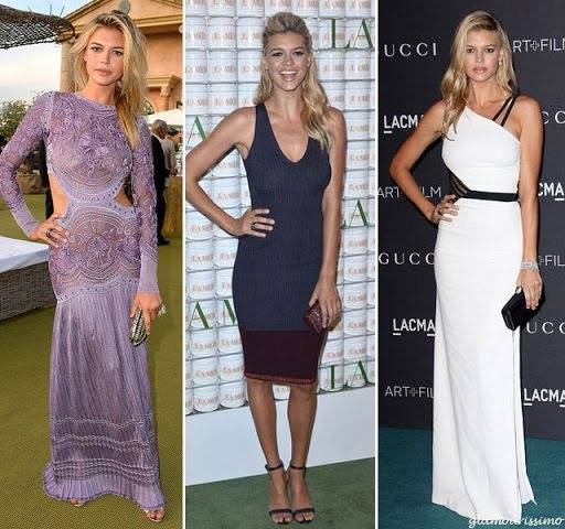 На красной дорожке и торжественных мероприятиях девушку редко увидишь в мини. Модель предпочитает юбки и платья миди, а если и решает открыть вниманию публики ноги выше колен, то делает это в рамках приличия. Блузы могут быть с глубоким V-образным вырезом, или вовсе без него.