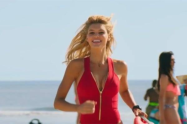 Сперва она вышла в черном бикини и косухе, едва прикрывавшей оголенный торс. Затем модель продемонстрировала слитный черный купальник, состоящий из эластана и пикантных прозрачных вставок по всей длине. Не обошлось без легендарного красного купальника из «Спасателей Малибу», дополненного золотистой молнией спереди и суженной спинкой.