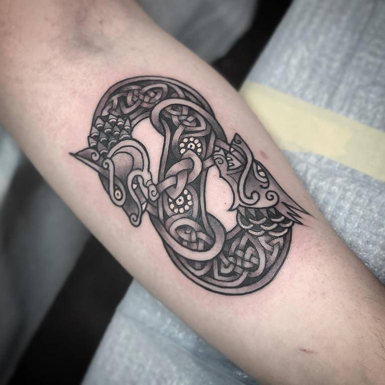 Мужские тату на руку кельтские узоры также часто содержат изображения животных и птиц. Кельты считали, что такие рисунки помогают ощутить единство с природой и окружающим миром. А качества изображенного животного, по мнению кельтов, переходили к человеку: