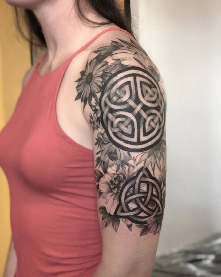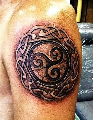 - Кельтские тату на плече символизируют магическое сплетение двух начал и обозначают слияние и единство любящих сердец, искреннюю преданность.