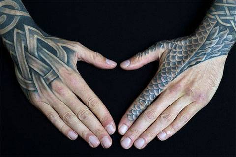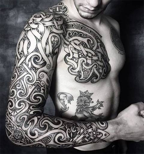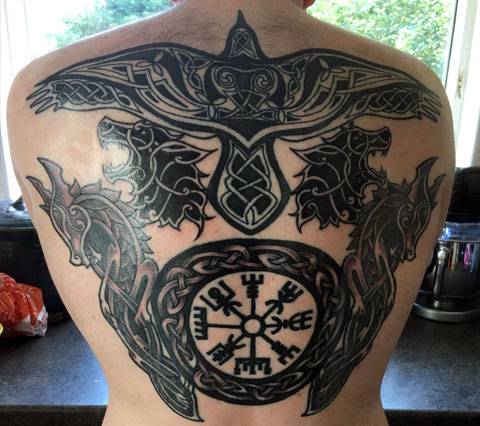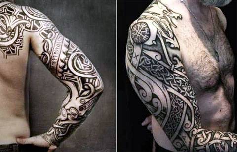 Скандинавские мотивы немного напоминают кельтские, нередко включают изображения древних богов, волка, топора Тора и воронов Одина. В скрытом смысле орнаментов преобладает мужская тематика: такие узоры на теле носили воины, моряки, представители суровых профессий.