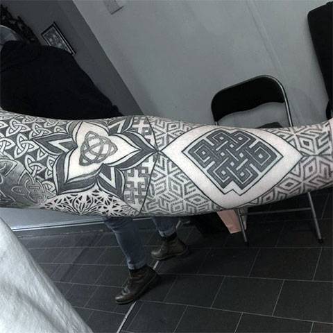 Вариант тату на шрамах один из самых востребованных в современном мире. Кельтские узоры для тату мужчине в этом случае отличный выбор. Одиночное изображение хорошо подойдет, чтобы скрыть небольшие рубцы. А для маскировки крупных и протяженных шрамов стоит выбрать кельтский орнамент.