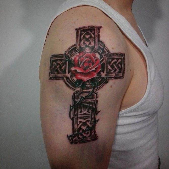 Крест и рисунки хищных зверей обычно наносят себе мужчины. Особенно органично кельтский стиль тату выглядят на плечах и предплечье.