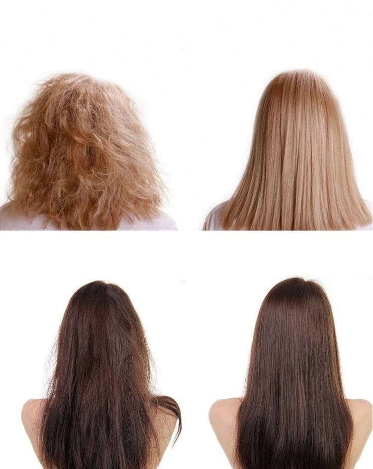 Необходимо понимать, что по структуре волосы бывают разные: или тонкие прямые, или жесткие кудрявые. Даже если кератиновая маска для волос будет содержать заголовок “разглаживающий эффект составляет 90%”, то при сильно излишней пушистости этот эффект может составить только 30%. Но, несмотря на столь малый процент выпрямления при жестких кудрях, кератиновый уход за волосами обеспечит уйму положительных эффектов: