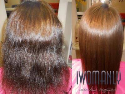 Если же очистка прошла удачно, на волосы наносят лечебный комплекс с наночастицами кератина. На завершающем этапе волосы высушивают и выпрямляют при помощи специального утюжка. В течение нескольких следующих дней волосы нельзя мыть, заплетать в хвост, а также использовать заколки. После процедуры происходит восстановление кутикулы, которая склеивается и выравнивается благодаря температуре.