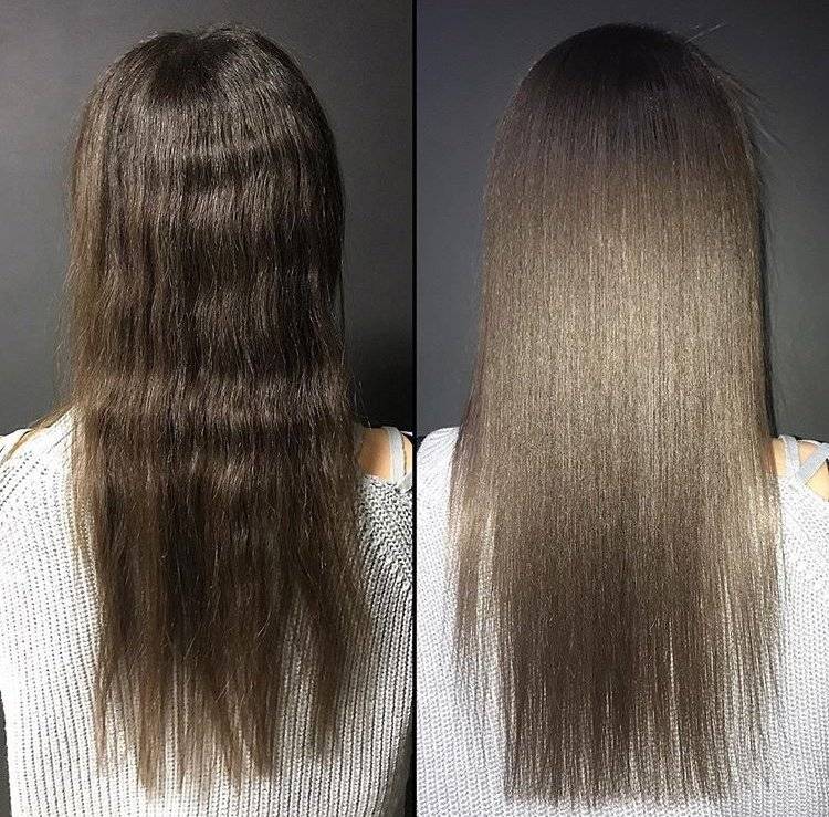 После чего волосы выпрямляются утюжком, нагретым до 200 градусов. Кератиновое выпрямление можно делать и в домашних условиях, волосы после процедуры будут иметь ухоженный и блестящий вид на протяжении 2-5 месяцев.