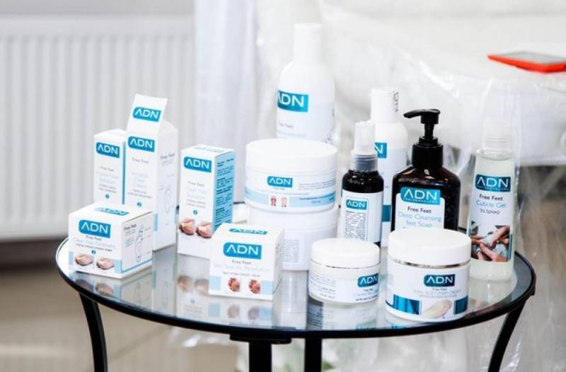 1. В самом начале процедуры происходит осмотр стопы, чтобы понять, на что нужно обратить особое внимание. 2. Затем ступни очищаются тоником, содержащим вытяжки из лечебных растений — в целях обеззараживания и подготовки к воздействию препаратов