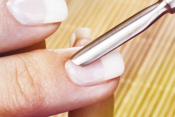 После ухаживающей ванночки можно приступать к обработке ногтей. Делая французский маникюр самой, рекомендуется использовать метод необрезного маникюра, поскольку он отличается меньшей травматичностью: