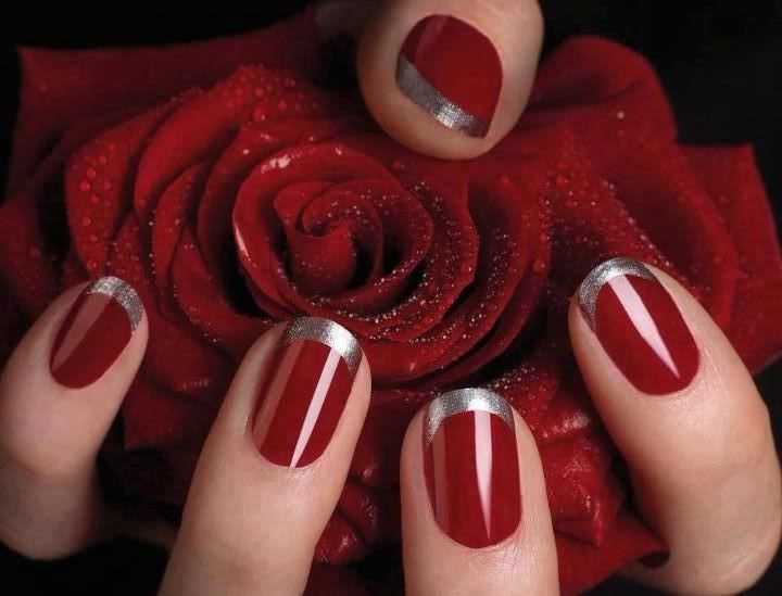Еще один необычный вариант для создания френча. Это вариант для тех, кто любит красные лаки в маникюре, но не готов делать однотонный сплошной дизайн. Такой френч выглядит необычно и очень стильно. А главное — женственно.