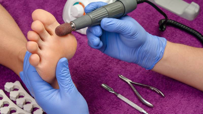 - Вероятность получения ожога – при использовании фрезы мастер не всегда чувствует, сколько кожи нужно убрать в том или ином месте. При этом обороты очень высоки и можно обжечь ногу.