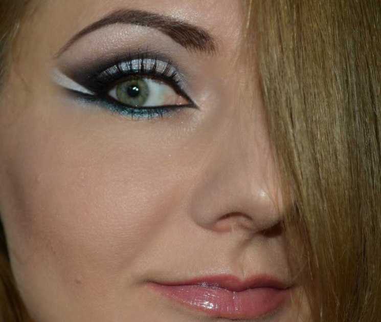 Белую линию обычно наносят на область под бровями и растушевывают. Накрашенные таким цветом глаза выглядят очаровательно.