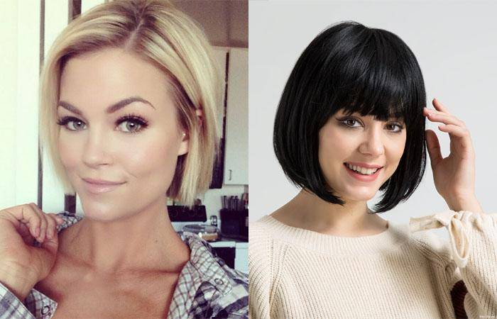 Каре чаще всего носят с челкой. Она может быть прямой, косой, на одну или две стороны.