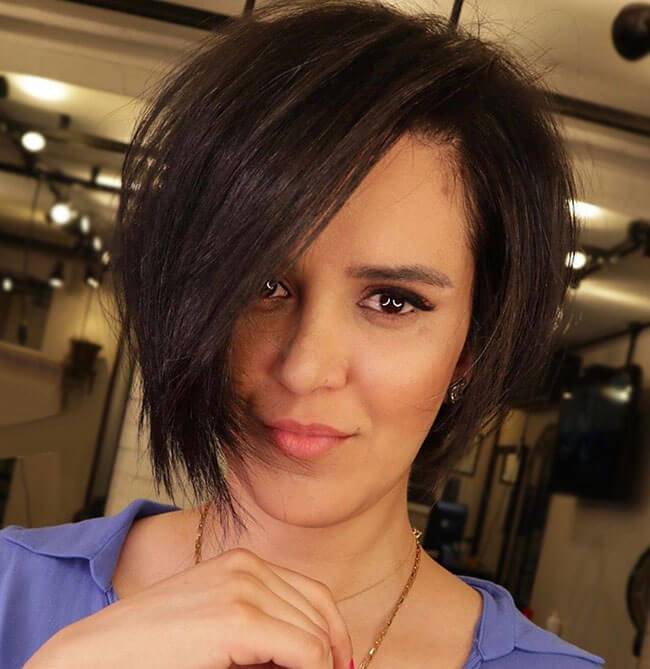 Косая помогает скрыть многие недостатки лица. Это беспроигрышный вариант, который идет всем. У нее нет противопоказаний по типу внешности. У прически появляется особый шарм. Удлиненная, градуированная, рваная делает круг и квадрат идеальными.