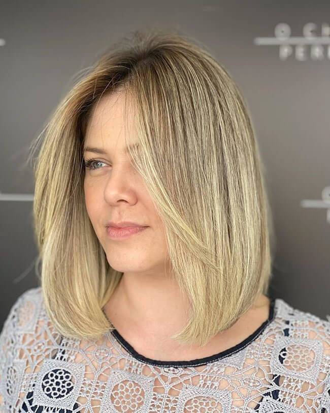 Вместо этого обратите внимание на удлиненную филированную челку длиной до бровей или на косую до подбородка Грушевидная форма лица. Откажитесь от объема в области подбородка, так как это еще больше подчеркнет полноту лица