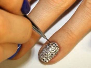 Процедура наклейки страз достаточно проста. Она требует повышенной аккуратности и твердости руки, чтобы не испортить внешний вид маникюра и установить стразы точно.