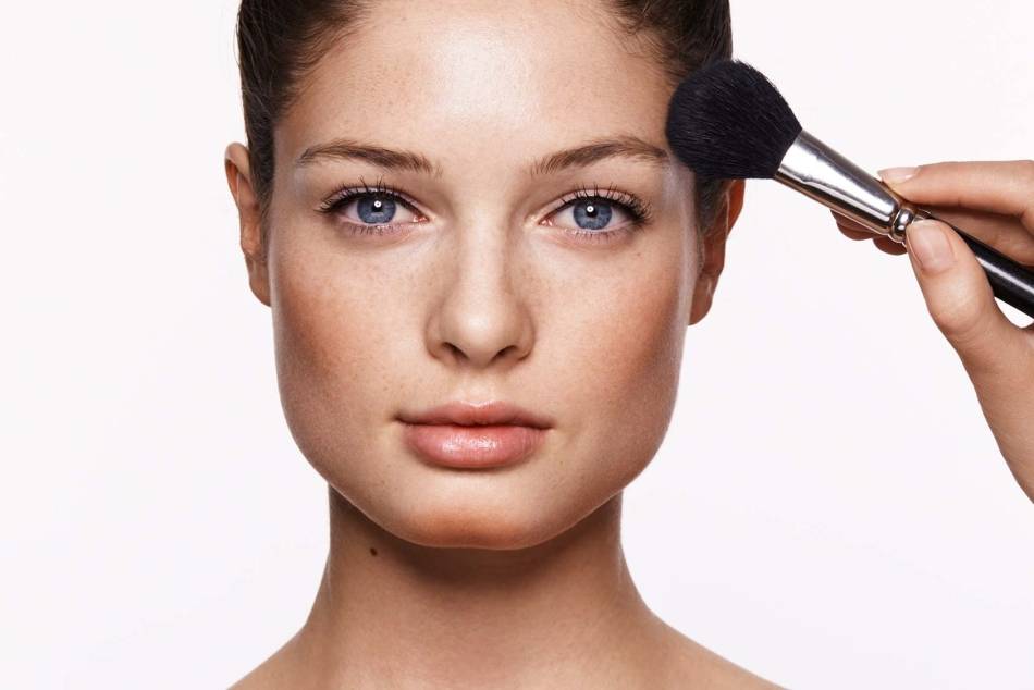 - бронзер. Он необходим для затемнения определенных зон. Это косметическое средство должно на тон или два быть темнее, чем натуральный цвет кожного покрова;