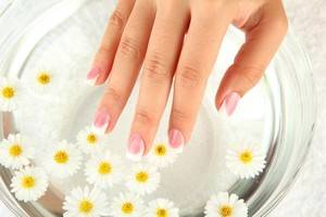 Преимущество ванночек перед другими процедурами заключается в том, что они могут воздействовать как непосредственно на ногтевую пластину, так и на кожу рук, что чаще всего бывает также необходимо. В воду комнатной температуры следует добавить 5-10 мл. масла, опустить руки на 10-15 минут.