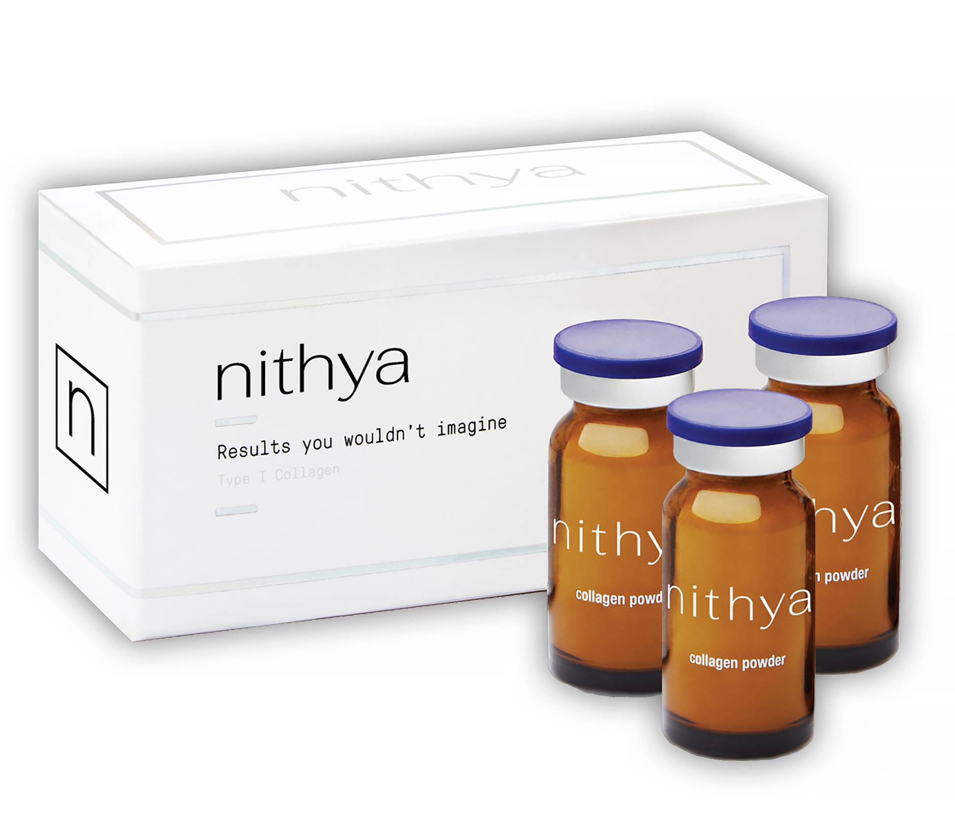 В нашей клинике мы используем препарат NITHYA (НИТИЯ) — это новый продукт для коллагеновой реструктуризации кожи, разработанный итальянской компанией Euroresearch. Препарат, на 100% биологически совместимый с нашим организмом, не вызывает воспаления и оказывает мощное стимулирующее воздействие на фибробласты.