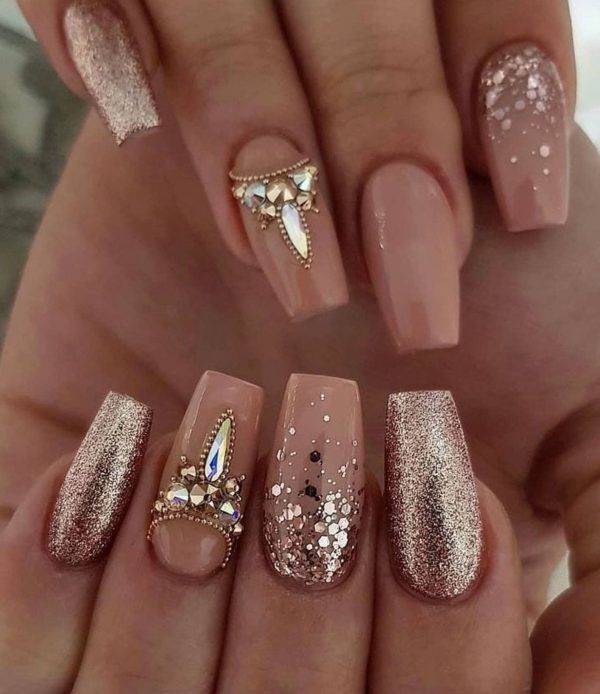 Накладные ногти часто декорируют стразами, камнями, блестками. Это придает ему оригинальность, праздничность. Эти элементы украшения могут различаться по цвету, размеру и качеству.
