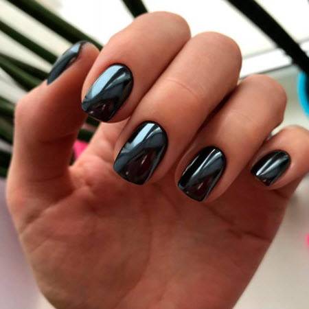 Представитель благородный палитры, который эффектно смотрится в самостоятельном исполнении. Однако он также может сочетаться с блестками, с дизайном «битое стекло», с золотым и серебряным узором, а также магнитным дизайном.