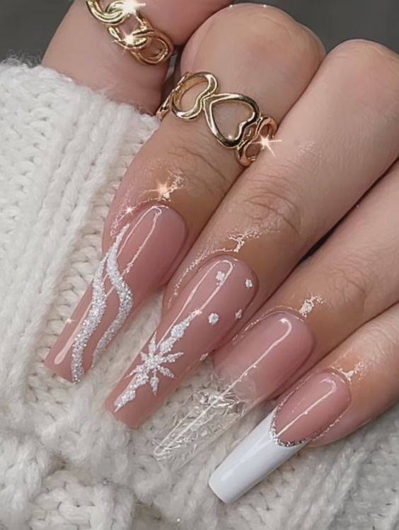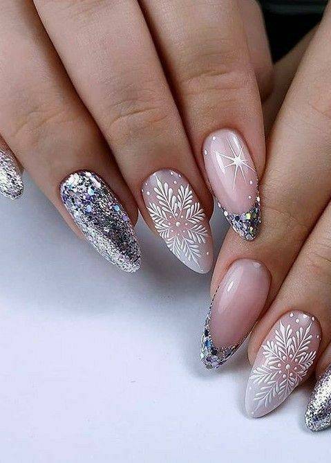 Зимний маникюр для длинных ногтей