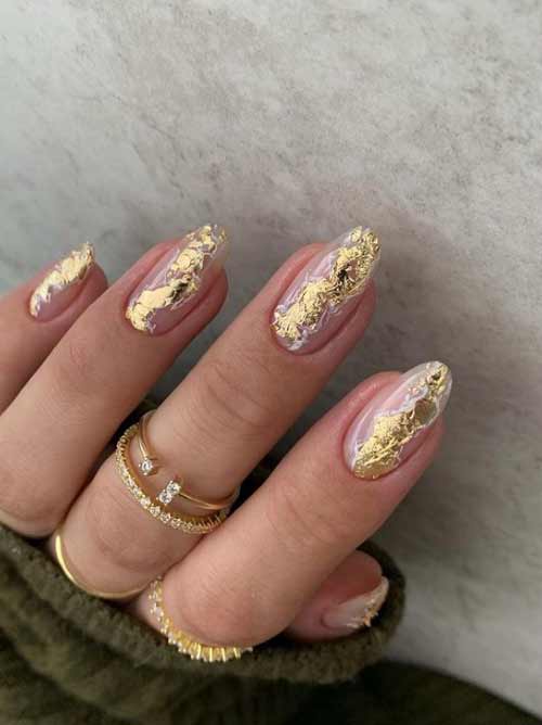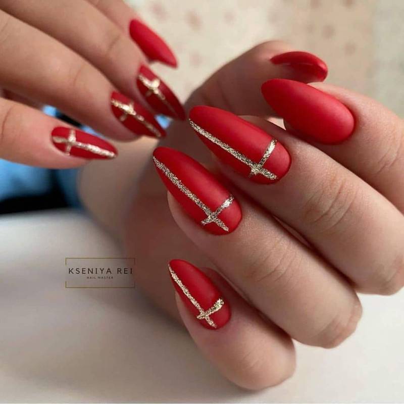 Не менее привлекательной альтернативой серебру является золото. Он красивый и праздничный, способен сочетаться с любым цветом и может использоваться для объемного рисунка.
