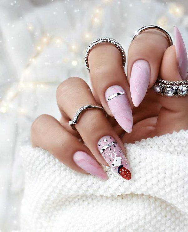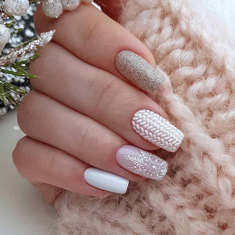 Обратите внимание, если вы хотите узнать больше о красивом вязаном маникюре, как его делать и идеях дизайна. Зимний пудровый маникюр напоминает новогоднюю игрушку