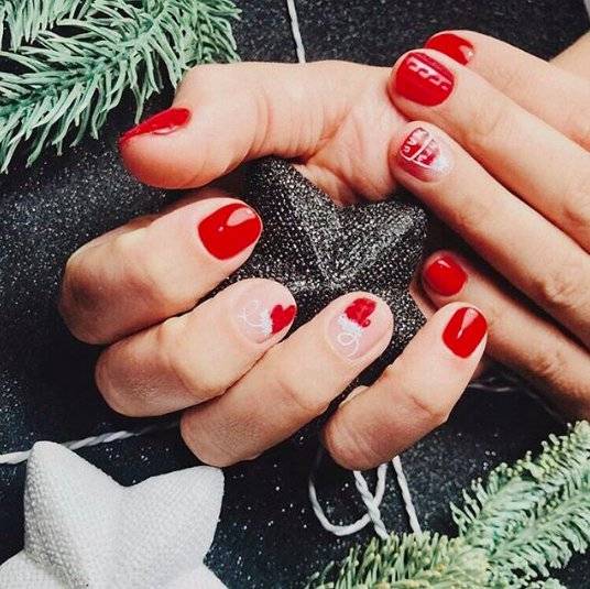 Новогодний маникюр по длине ногтей